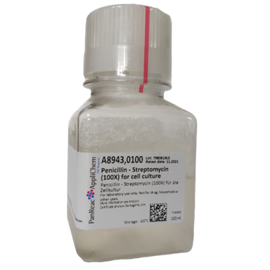 Penicillin-Streptomycin(100X)forcellculture,俗稱青鏈霉素雙抗,常用于預防細胞培養(yǎng)的細菌污染,特別是革蘭氏陽性和陰性菌的污染,可以直接添加到細胞培養(yǎng)液內(nèi)。青霉素抑制肽聚糖合成,鏈霉素抑制蛋白質(zhì)的合成,有效防止細菌細胞壁形成。