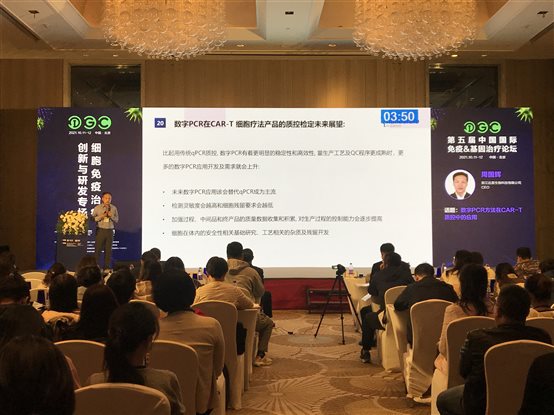 本次論壇西美杰特邀達(dá)普生物周國(guó)輝博士為與會(huì)人員帶來(lái)了“數(shù)字PCR方法在CAR-T質(zhì)控中的應(yīng)用”的專題講座。周國(guó)輝博士開發(fā)了一種基于數(shù)字PCR方法的儀器及微流控芯片系統(tǒng),從質(zhì)量控制的角度,實(shí)現(xiàn)對(duì)CAR-T細(xì)胞等生物制品的質(zhì)控要求。