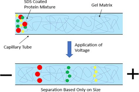 CE-SDS是一種在變性條件下檢測(cè)蛋白純度的方法,方法原理與SDS-PAGE(十二烷基硫酸鈉聚丙烯酰胺凝膠電泳)類似,與SDS-PAGE相比,CE-SDS是以高壓直流電場(chǎng)為驅(qū)動(dòng)力,以彈性石英毛細(xì)管為分離管道,毛細(xì)管內(nèi)先填充凝膠,此時(shí)凝膠會(huì)在毛細(xì)管內(nèi)形成分子篩,樣品依分子量的大小在毛細(xì)管內(nèi)移動(dòng)速度不同而進(jìn)行分離,能夠有效減少組分?jǐn)U散,所得峰型尖銳,分離效率高。因此,CE-SDS具有上樣量小、通量大、分辨率高、重復(fù)性好、可精確定量抗體降解碎片等優(yōu)點(diǎn),用于還原和非還原單抗藥物的純度分析,免去了復(fù)雜的人工操作,在還原模式中還可以實(shí)現(xiàn)非糖基化重鏈(NGHC)的精確定量。