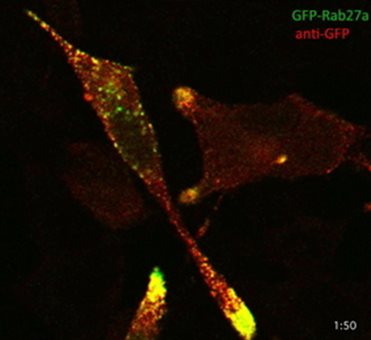AtT-20轉(zhuǎn)染表達GFP-Rab27a后用GFP抗體免疫染色結(jié)果