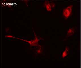 tdTomato是由兩個mCherry單體串聯(lián)表達的二聚體,這種設(shè)計是為了降低蛋白質(zhì)聚集,提高熒光強度,并且減少對細(xì)胞或?qū)嶒瀯游锏亩拘?。因此,tdTomato在活體實驗中更為常用,它提供了一種更為穩(wěn)定和強烈的紅色熒光標(biāo)記。