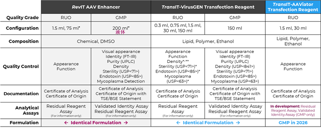 TransIT-VirusGEN® GMP級別轉染試劑 |