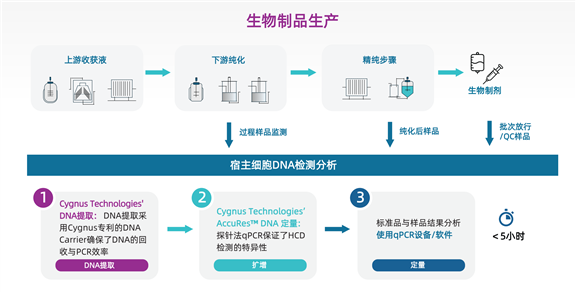 Cygnus' DNA extraction method utilizes a novel DNA carrier, which enables the recovery of HCD from trace-level residual DNA and facilitates DNA detection and quantification in an environment free from protein, salt, and detergent contamination. This improves the reproducibility and stability of DNA detection and amplification compared to other extraction methods.